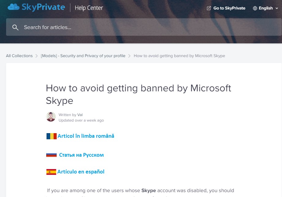 Recently we have been receiving more and more complaints from our models that sometimes their Skype accounts are getting banned by Microsoft. As you know, SkyPrivate uses Skype to connect models and members and charge the calls.