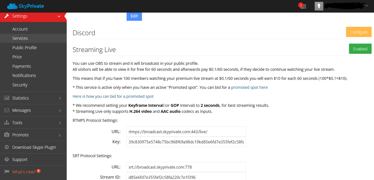 We are happy to announce that Skyprivate has officially launched a streaming feature, this feature is optional and only available for models who are in the "Promoted" slots. You can set up this feature here: