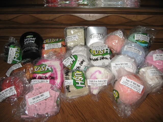 Ok so i know there are a million Lush threads but i have to add just one more. I am sooo addicted. I woke up so happy today knowing i was going to get to go shopping at lush. I told my husband this morning "its gonna be a great day because i get to go to lush" So he gave me 150$ and told me to meet him in a half an hour. Well i used all my time and ALL MY MONEY! HAHA. I just went through picking everything i wanted, and with all the Christmas stuff plus my favorites it adds up quick!