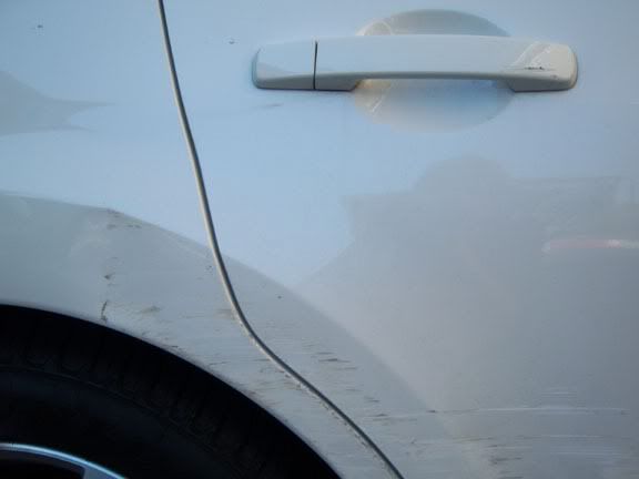 It looks horrible. I cant believe I just did this. After finding out Im pregnant Im definately not working now and dont want to use insurance to fix it because I dont want our deductible to go up. And we dont have extra money laying around to get it fixed. Guess Im going to be driving a car with scrapes all down the rear door and back panel. The back passenger door is majorly dented, it still opens but oh man - stupid stupid stupid.