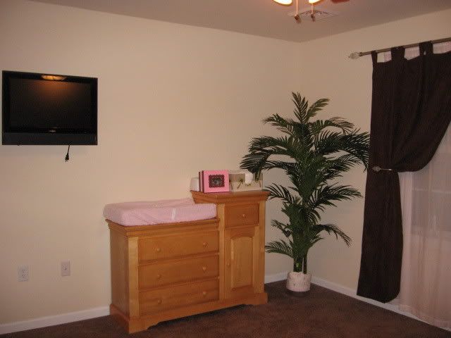 Changing table and babies first flat screen(The cords are being run up the wall)