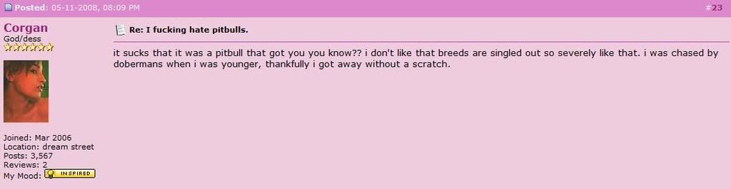 In that Pit Bull thread, someone had mentioned Doberman dogs being aggressive. I don't want to rehash the whole Pit Bull thing (so let's please not bring that up in this thread, I want my question answered without the thread being shut down beforehand), I'm just asking about Doberman's. Are they GENERALLY aggressive dogs? I've always wanted one (I was going to give it a pink rinestone collar and name it Princess... I thought it would be ironic since they're scary-looking). Let's say that I'm you're average dog-owner... nothing special. I taught my dog to walk on a leash, sit, play fetch, etc. Let's say I had a gated yard but it's not like it's impossible for dogs to get out. Would I be putting more on my plate than I would have otherwise thought?