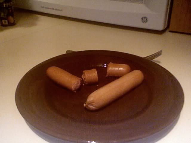 - Cut up the hot dogs into 1/2 inch pieces. If you used two hot dogs each person should get one hot dog, if you used three hot dogs each person should get one and one half hot dogs.