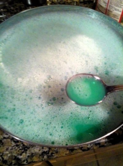 Mix for 17-20min (You will want to add coloring while the gunge is hot, otherwise you will have flakes and dyed skin)