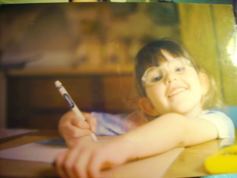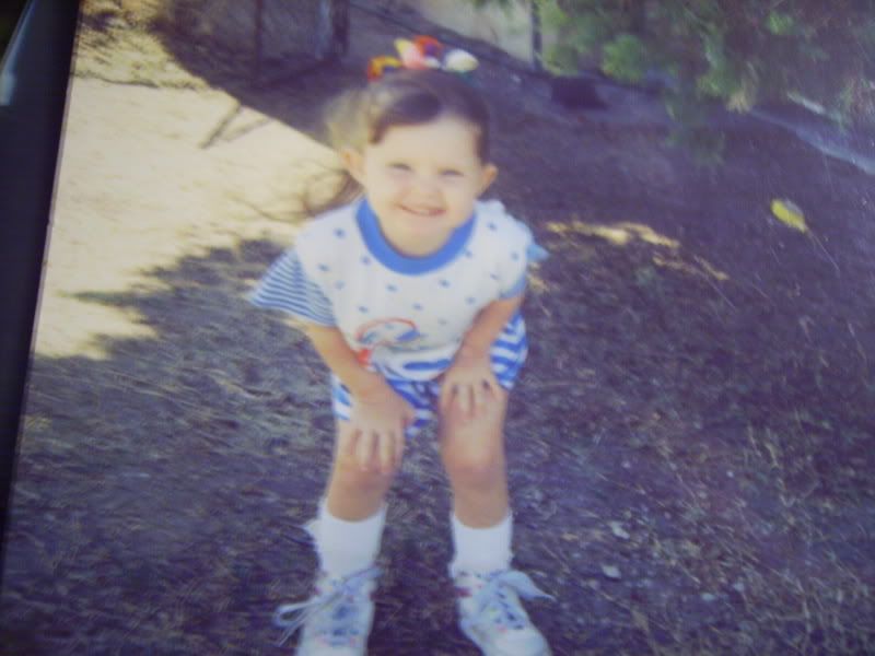 Haha, I was amused at "Little Miss Sunshine" Having chubby cheeks and ghetto plastic glasses so I am posting these. They are terrible quality pictures because I don't have a scanner so I just took a picture of a picture, haha. Anyway, here they are don't laugh.